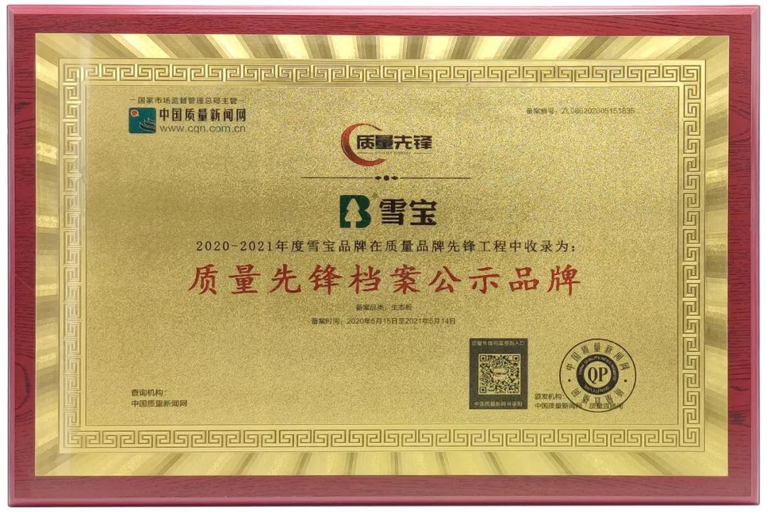 - 品質(zhì)先行,板材十大品牌雪寶入選“中國質(zhì)量先鋒檔案公示品牌”