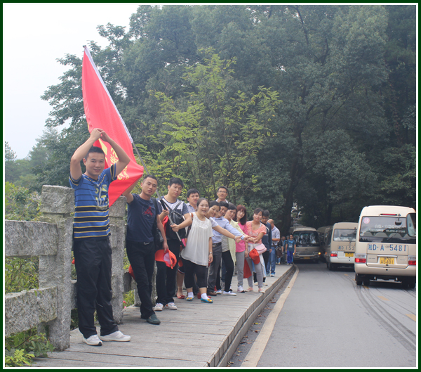 雪寶·國內(nèi)營銷中心的精英們,精神飽滿,伴隨著對祖國65周年的祝福,開始徒步南岳衡山。