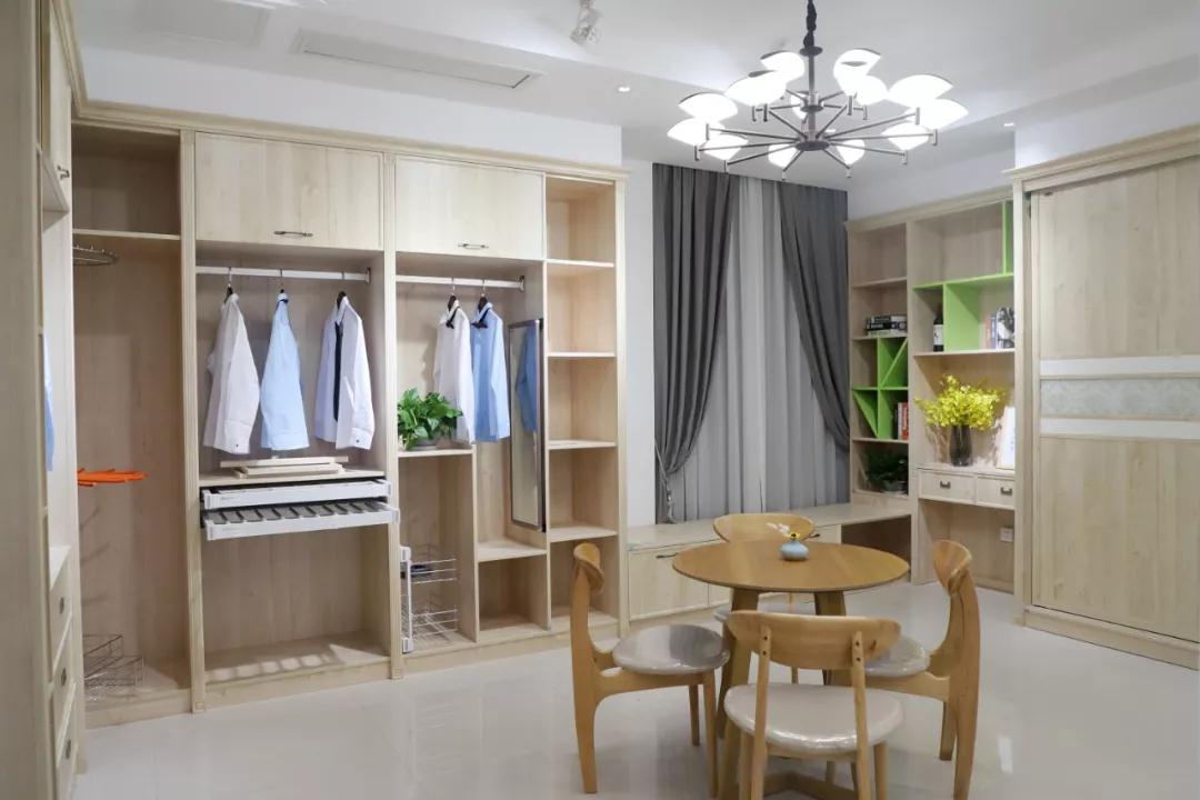 300多平米的店面內(nèi),不僅有板材、整體衣柜、五金、柜門(mén)等產(chǎn)品,還采用樣板間的方式,呈現(xiàn)出不同的裝修風(fēng)格,將產(chǎn)品展示與店面設(shè)計(jì)結(jié)合,為消費(fèi)者帶來(lái)最為直觀的產(chǎn)品效果展示,令人眼前一亮。