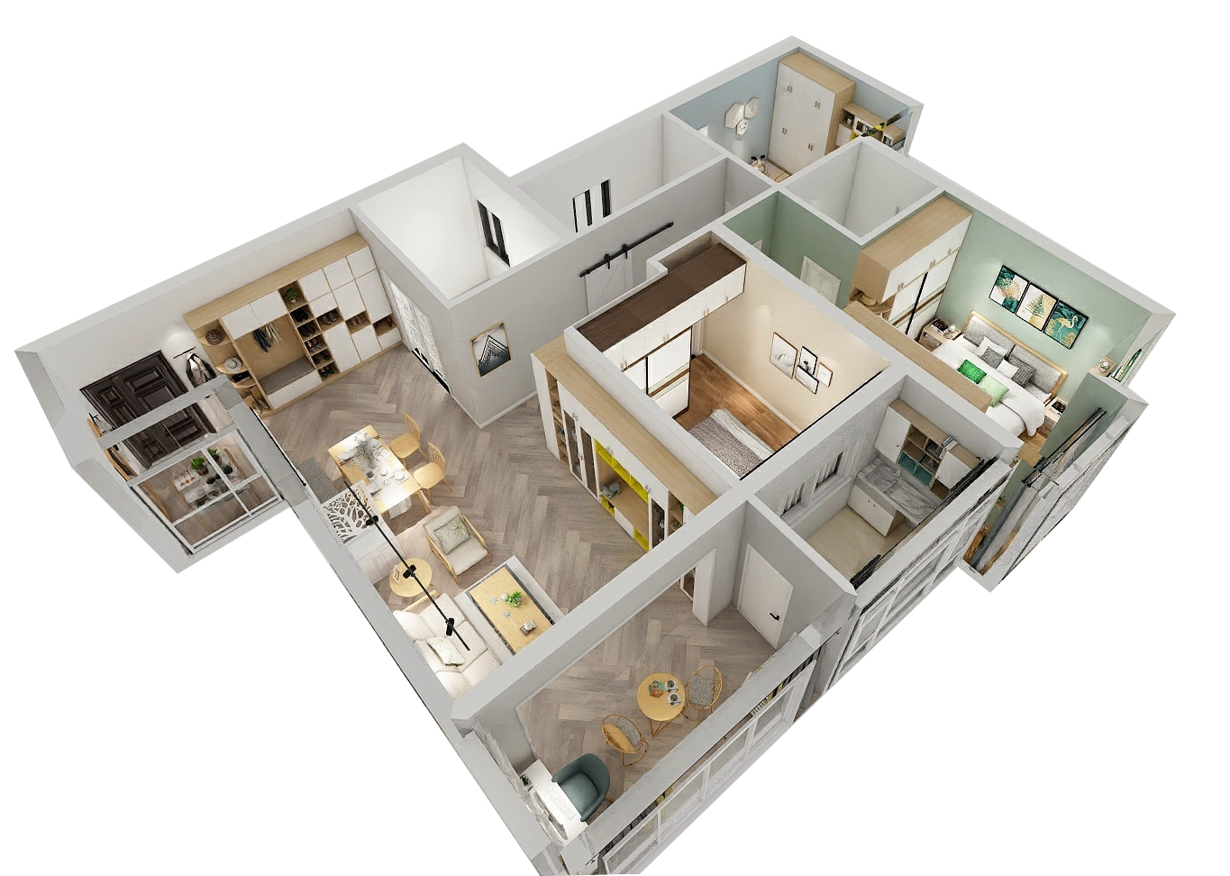 業(yè)主是一對年輕的夫妻,他們有一個活潑好動的兒子,男主人文藝、有情懷,太太開朗、溫柔、富有童心,他們唯愛簡潔實用的設計。我們的設計師通過傾聽與交流,最終呈現(xiàn)如下作品。