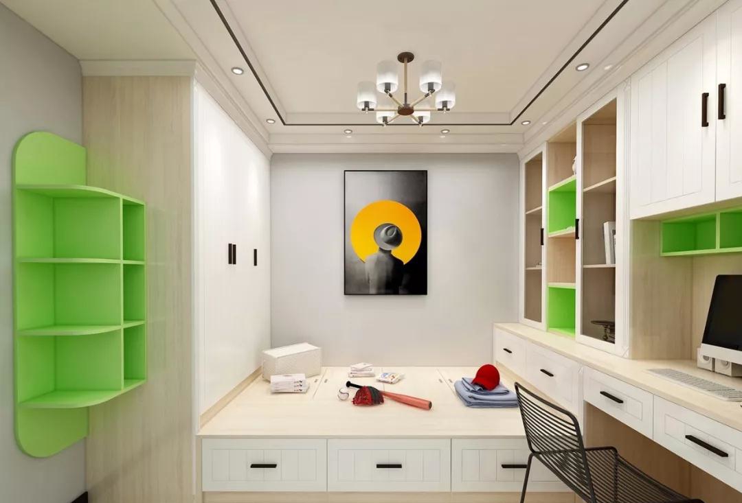 將榻榻米底部整體抬高,加上長擱板做書桌,層次感十足的小空間也可以成為孩子們學(xué)習(xí)娛樂的區(qū)域。
