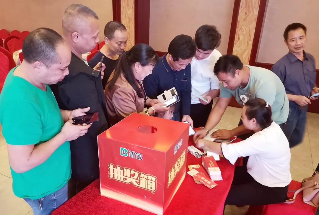 抽獎環(huán)節(jié),所有訂貨客戶均獲得不同的實(shí)物獎勵,雪寶品牌懷化地區(qū)周總活動現(xiàn)場更是拿出現(xiàn)金大獎進(jìn)行加持,將答謝盛會推向高潮。