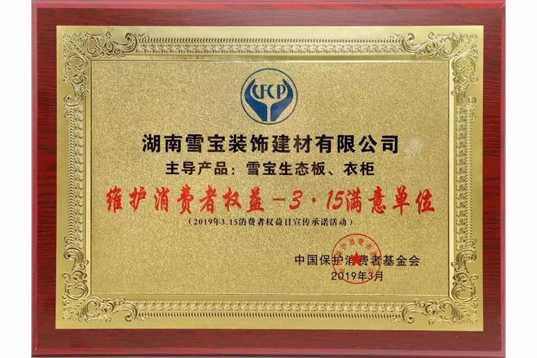 就在3·15消費者權(quán)益保護日這天,雪寶品牌獲得由中國保護消費者基金會頒發(fā)的【2019“維護消費者權(quán)益-3.15滿意品牌”】用品質(zhì)和誠信贏得贊譽!