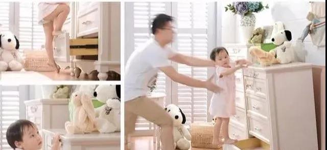 兒童房書柜衣柜等必須與墻固定,防止頑皮孩子蹬著書柜爬高時(shí),柜子翻扣下來(lái);