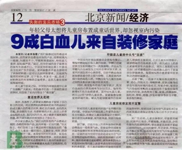 中國室內(nèi)環(huán)境監(jiān)測委員會也曾發(fā)布警示:警惕甲醛超標(biāo)引發(fā)兒童白血病。甲醛已經(jīng)被世界衛(wèi)生組織確定為一類致癌物,并且認(rèn)為甲醛與白血病發(fā)生之間存在著因果關(guān)系。從室內(nèi)環(huán)境監(jiān)測中心調(diào)查看,目前甲醛是我國新裝修環(huán)境中的主要污染物,兒童是室內(nèi)環(huán)境污染的高危人群,甲醛污染與兒童白血病之間的關(guān)系應(yīng)該引起全社會關(guān)注。