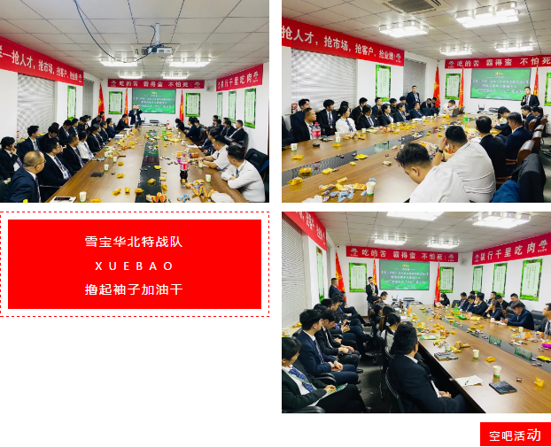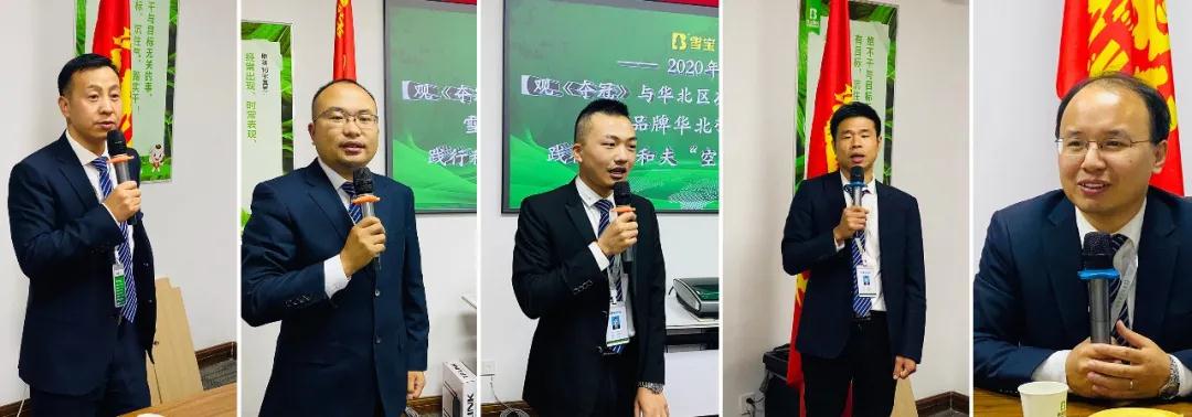 10月6日,“觀《奪冠》與華北區(qū)決戰(zhàn)2020收官季的決心”第七期雪寶華北區(qū)稻盛和夫“空吧”雪寶華北營(yíng)銷中心舉行。雪寶集團(tuán)董事長(zhǎng)李振先生、雪寶華北營(yíng)銷中心營(yíng)銷總監(jiān)石波先生、雪寶華北營(yíng)銷中心營(yíng)銷副總監(jiān)歐陽(yáng)可一先生、雪寶華北營(yíng)銷中心營(yíng)銷副總監(jiān)陳家義先生與華北區(qū)全體員工共同參與了此次會(huì)議。