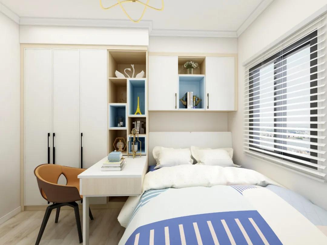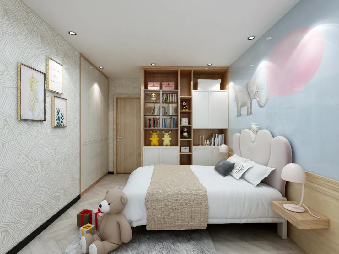 兒童房布局設(shè)計:由于兒童房大多在次臥或者客臥,面積相對比較小,而且兒童房需要承擔多種功能,所以需要合理的家具布局,以此給活潑好動的孩子更多活動空間。
