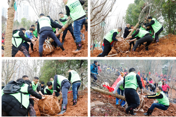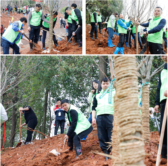 扶苗、培土、扶正、踩實(shí)……在滿(mǎn)是黃泥的植樹(shù)區(qū)域,大家手拿鐵鍬、鋤頭熱情投入到勞動(dòng)中,細(xì)致認(rèn)真地做好每一道工序,現(xiàn)場(chǎng)一片熱火朝天。一排排新栽樹(shù)苗在春日的朝氣中迎風(fēng)挺立,為初春大地增添了一抹生機(jī)。
