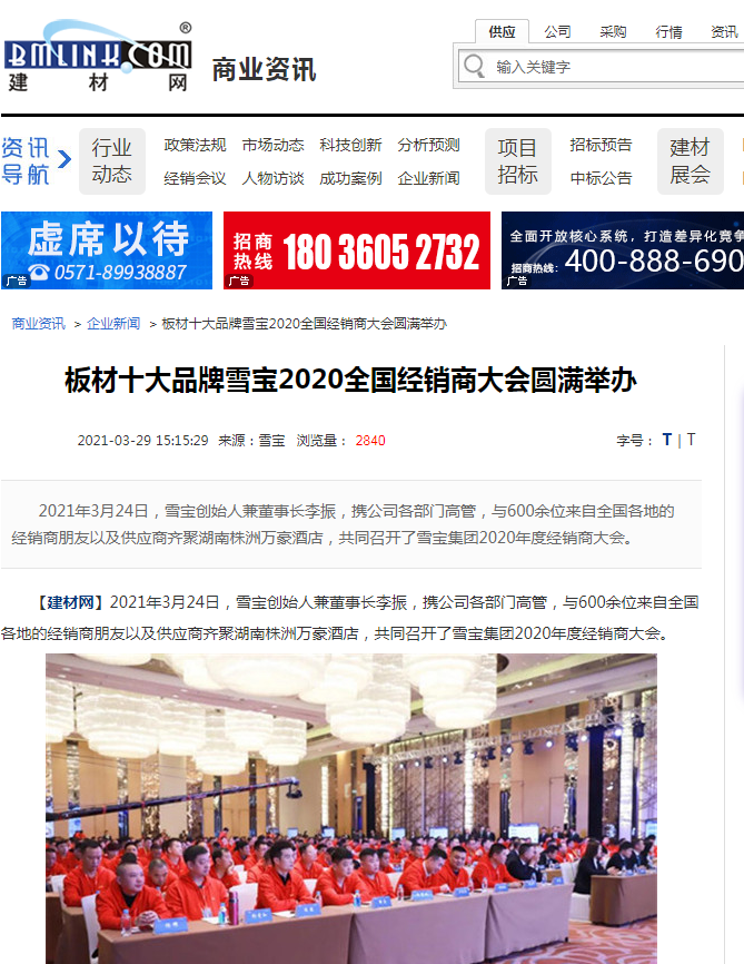 板材十大品牌雪寶火了!全國(guó)媒體爭(zhēng)相報(bào)道雪寶經(jīng)銷商年會(huì)盛況