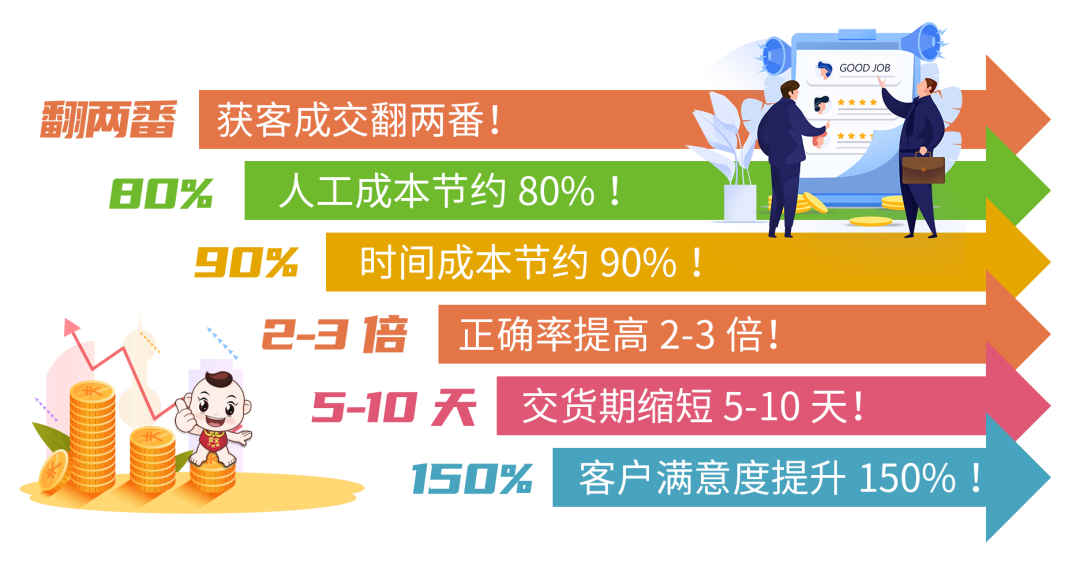 提供留客助銷、智能設計、效果圖免拆單對接生產(chǎn)、數(shù)字化運營管理等全套解決方案。同時,砍掉多余成本、降低人工依賴、提升生產(chǎn)效能,實現(xiàn)定制前后端全流程高效轉換,是當之無愧的全屋定制運營神器。輕松實現(xiàn):