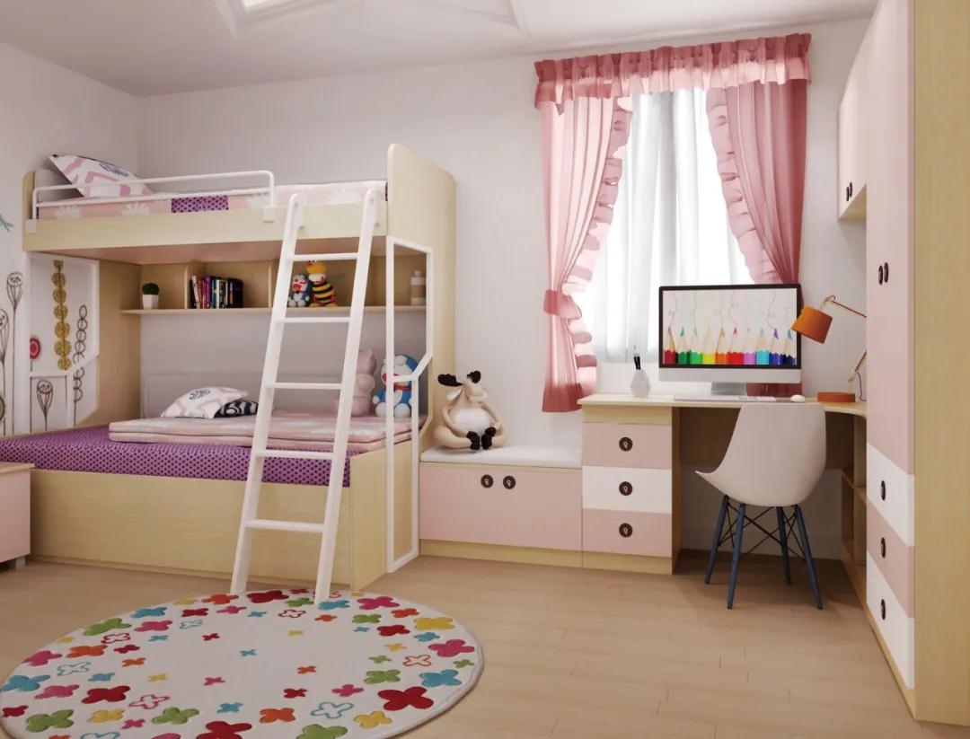 女孩房一般以暖色為主,可選擇粉色系作為主色,以淡雅或明亮的輔色,增加空間層次感和活潑度。
