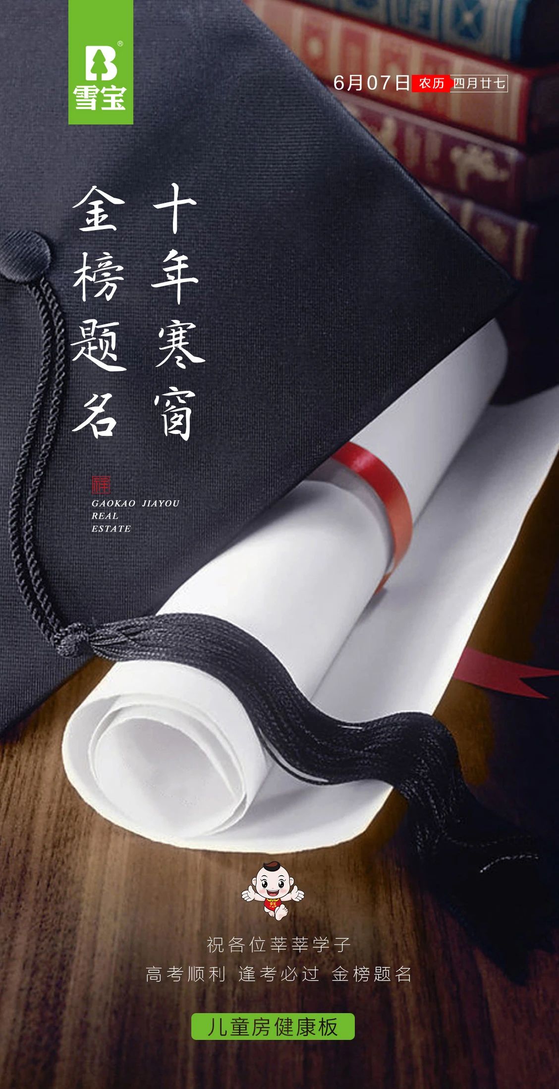 雪寶板材祝莘莘學(xué)子旗開得勝、金榜提名!
