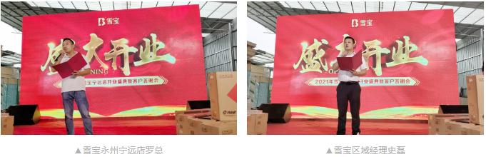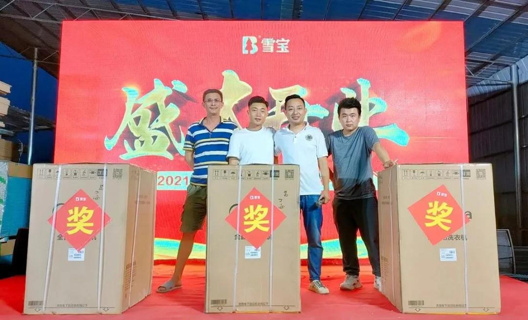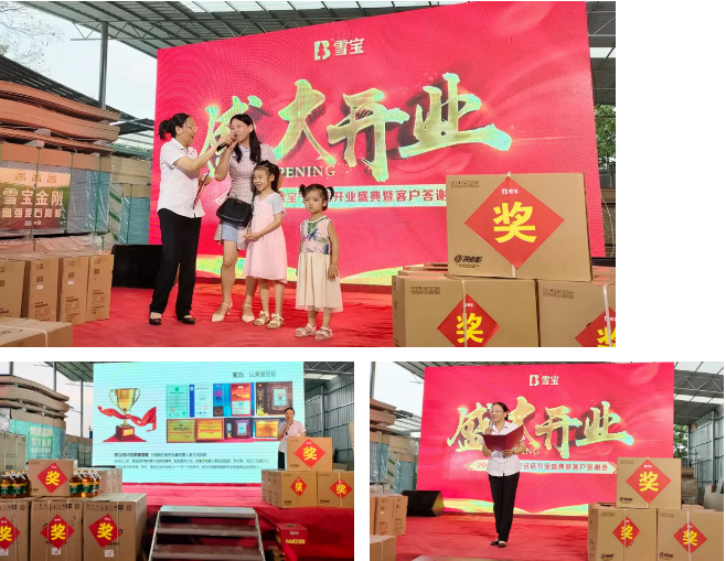 因酒店接納容量不足,本次答謝會最終選在雪寶寧遠店羅總自家倉庫舉辦,讓每一位來賓朋友近距離親身體驗雪寶系列產(chǎn)品的同時,也充分顯現(xiàn)雪寶品牌在寧遠地區(qū)的強大實力。