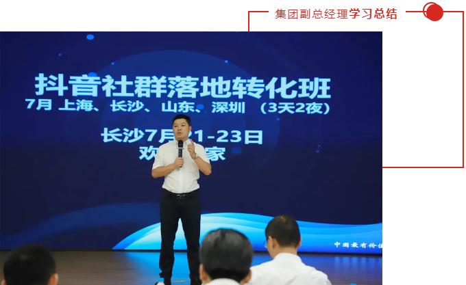 “授人以魚不如授人以漁”,通過短視頻運營開展營銷活動是現(xiàn)今新媒體的主流趨勢和發(fā)展必然。在學(xué)習(xí)總結(jié)致詞中,李副總表示將加強企業(yè)抖音運營團隊建設(shè)進度,打造集團抖音運營事業(yè)部,更好的服務(wù)品牌和門店終端,通過線上線下培訓(xùn)相結(jié)合,提升品牌線上推廣體制,與更多經(jīng)銷商家人、合作伙伴一起順勢而為、借勢而進、造勢而起、乘勢而上!