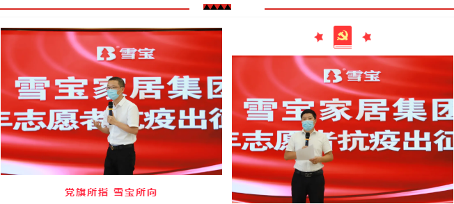 在雪寶抗疫公益愛心活動(dòng)再出征儀式上,雪寶家居集團(tuán)董事長李振先生與集團(tuán)副總經(jīng)理李杰先生致詞,肯定了雪寶人的勇作為敢擔(dān)當(dāng)?shù)木,表示在一線的切身體驗(yàn)讓我們每個(gè)人對抗疫有更為清晰的認(rèn)識,也深刻領(lǐng)會(huì)到歲月靜好不過是有著許許多多奮不顧身的人在負(fù)重前行,在執(zhí)著堅(jiān)守,在堅(jiān)強(qiáng)守護(hù)!