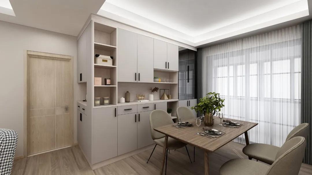 使用PET門板的家具柜用簡約、高級的飾面效果塑造空間的藝術(shù)力量,讓整個空間彌漫著一股高級、明亮、時尚,同時又有藝術(shù)化的生活氛圍。