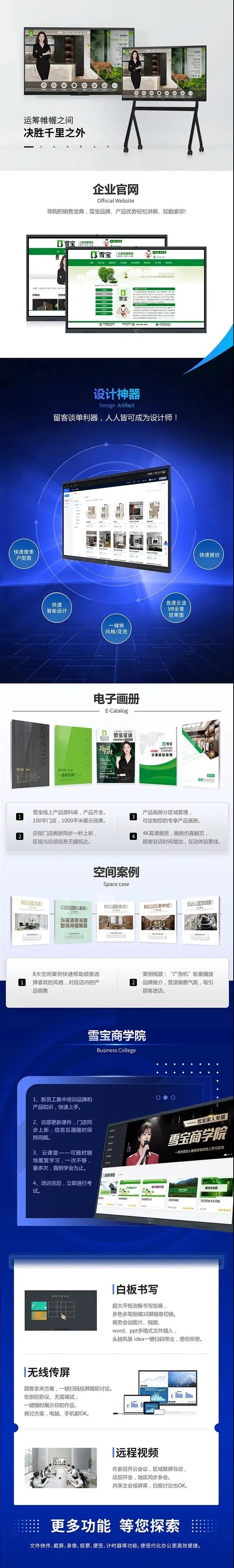 雪寶智慧云屏是一款集企業(yè)展示、設(shè)計(jì)下單、內(nèi)訓(xùn)學(xué)習(xí)、遠(yuǎn)程互通等多功能于一體的高清智能多媒體一體機(jī),有助于門(mén)店多維智能展示,打通總部與終端門(mén)店的點(diǎn)對(duì)點(diǎn)溝通,提升門(mén)店經(jīng)營(yíng)效率。
