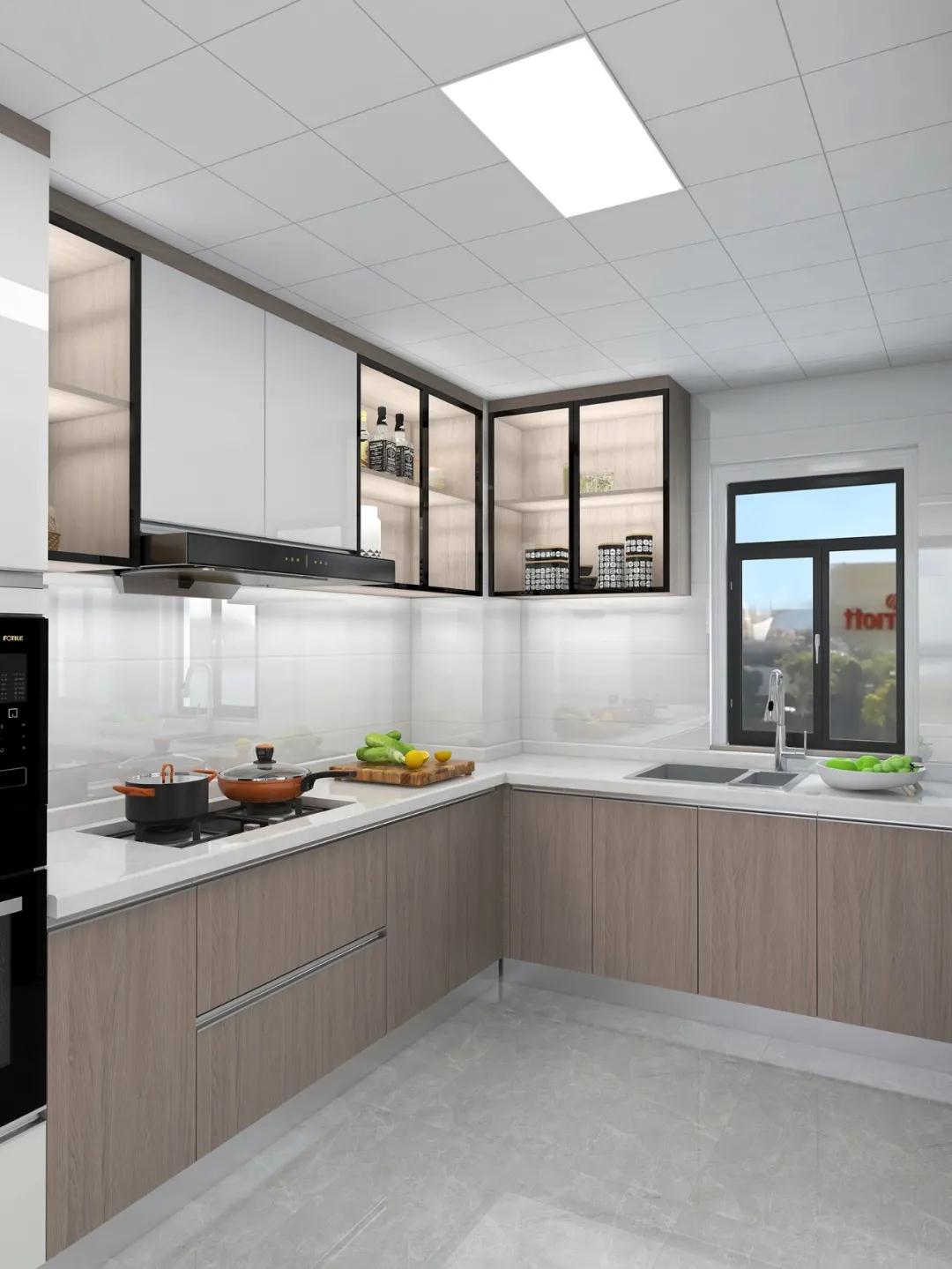 L型不僅合理設(shè)計(jì)“洗切炒”三大功能區(qū),還能讓廚房動(dòng)線更順暢。能將轉(zhuǎn)角柜的雞肋空間充分利用起來,在轉(zhuǎn)角柜處設(shè)計(jì)開放式擱架、轉(zhuǎn)角拉籃等,拿取各類廚房用品超方便。
