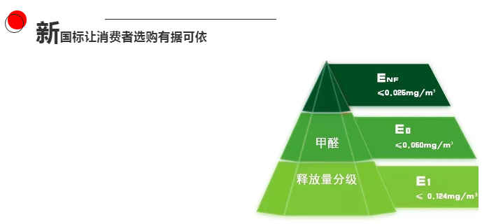 相對于2017年的國標,在室內(nèi)用人造板及其制品甲醛釋放量分級上,E1等級甲醛釋放數(shù)值不變;E2級徹底告別歷史舞臺,成為過去式;