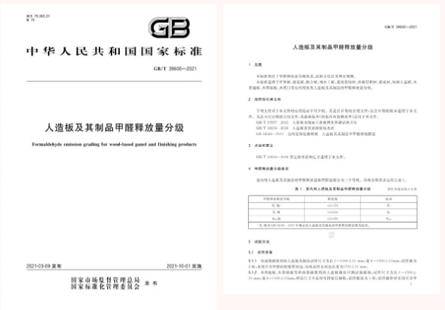 由全國人造板標準化技術(shù)委員會歸口管理的GB/T 39600-2021《人造板及其制品甲醛釋放量分級》和GB/T 39598-2021《基于極限甲醛量的人造板室內(nèi)承載限量指南》正式發(fā)布。新國標于2021年10月1日正式實施,E0級正式納入分級標準,獲得國家認可,ENF級成為全球最高環(huán)保等級。