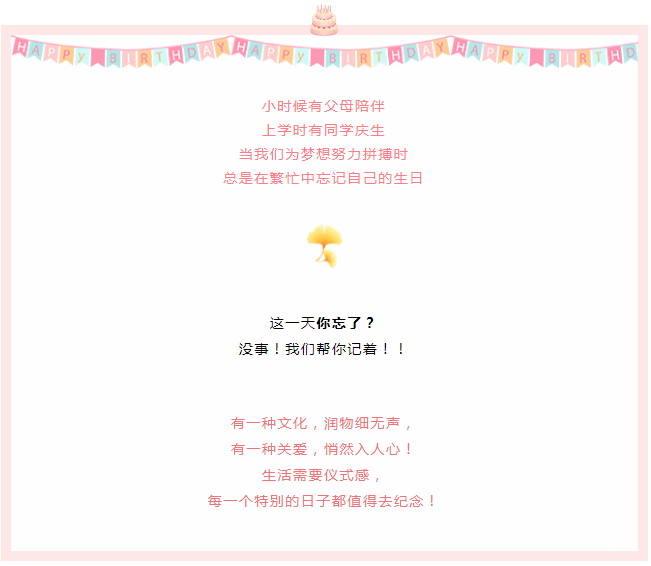 承蒙時(shí)光不棄,成長(zhǎng)不期而遇。最后祝所有家人們生日快樂,升職加薪!