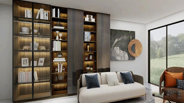 搭配建議:根據(jù)書房戶型,可以制作整體書柜和組合書柜,整體超高門書柜的大氣,組合式超高門書柜易騰出位置給書桌。