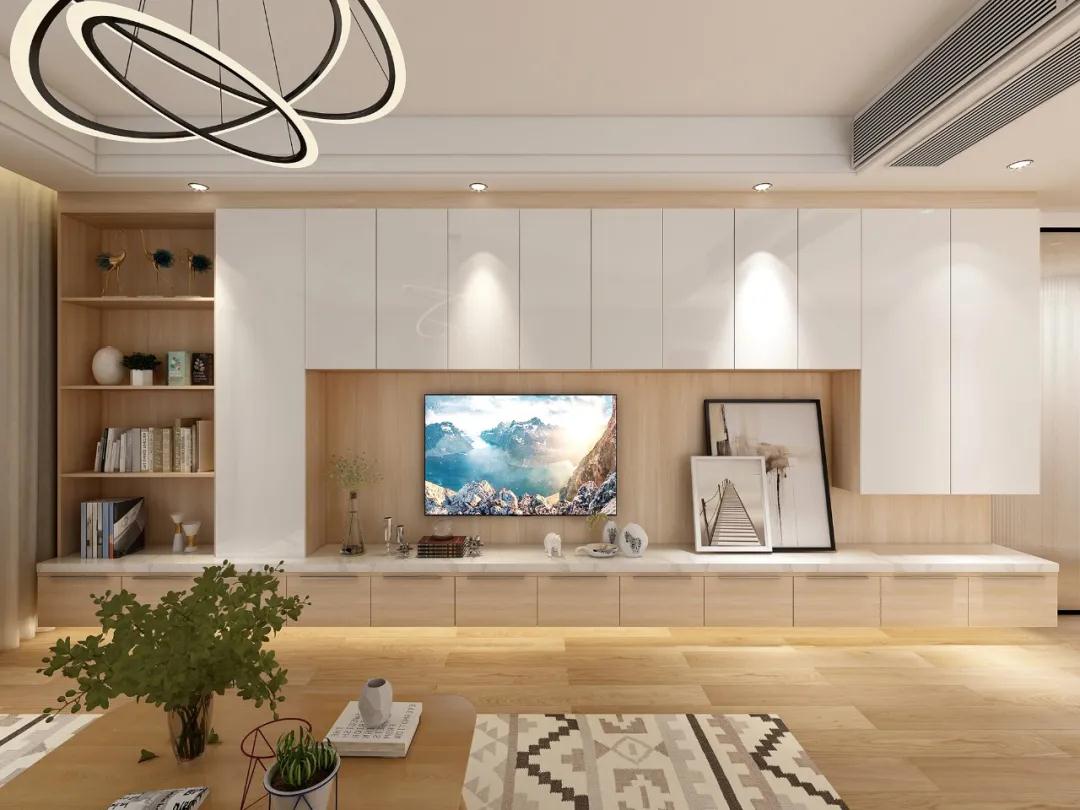電視柜是客廳的視覺中心,在客廳只有沙發(fā)茶幾電視柜的布局情況下,電視柜就承擔(dān)了客廳的主要收納需求,超高門電視柜既能裝又大氣,滿足普通家庭對(duì)電視柜的兩個(gè)要求。