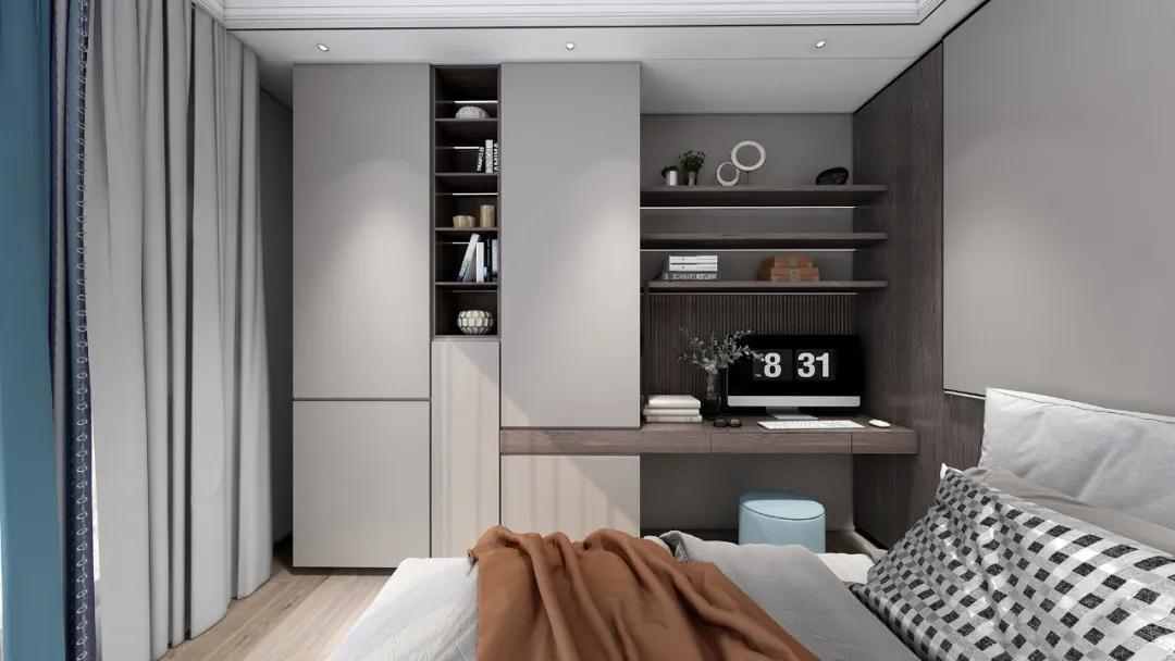 書房的使用頻率不如客餐廳等空間高,所以易清潔、防落灰是第一要?jiǎng)?wù)。超高門由于是無縫銜接,所以落灰更少,打掃起來更快捷方便。收納遵循藏八露二的原則,就算沒有時(shí)間清理,也能讓空間一直保持整潔不雜亂。
