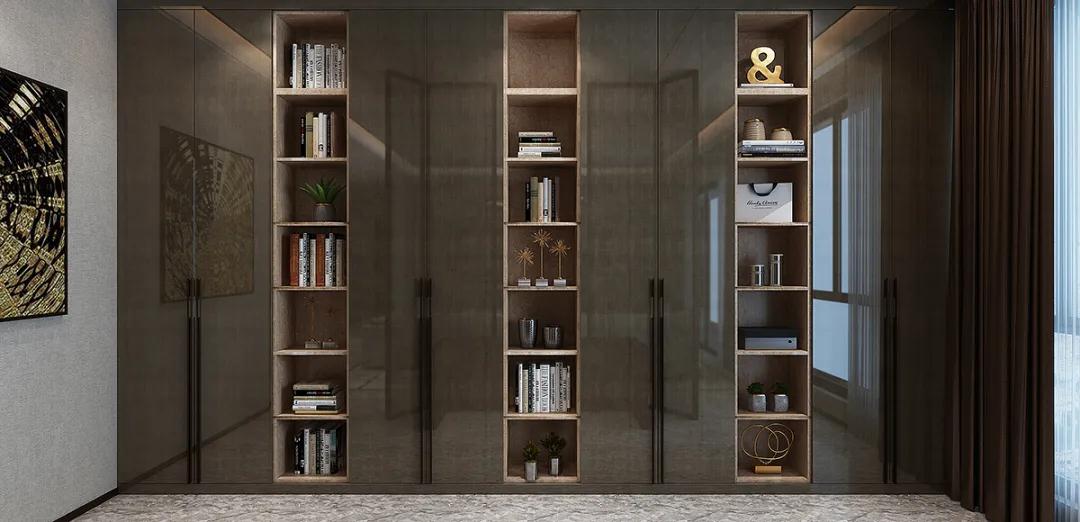臥室衣柜在設(shè)計中同樣運用了黑框玻璃門與高光門的結(jié)合,直線條的設(shè)計貫穿于整個空間,營造出一個時尚雅致且靈動的空間氛圍。