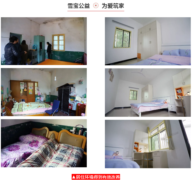 經(jīng)對(duì)比走訪家庭的實(shí)際情況并商議決策,以及慎重考慮房間采光通風(fēng)等多方面原因,最終選擇以下房間進(jìn)行“團(tuán)團(tuán)希望小屋”改造,其中援建裝修材料購(gòu)買(mǎi)、工人落實(shí)、施工安裝、衛(wèi)生清掃等所有工序均由雪寶全權(quán)負(fù)責(zé)和把控。