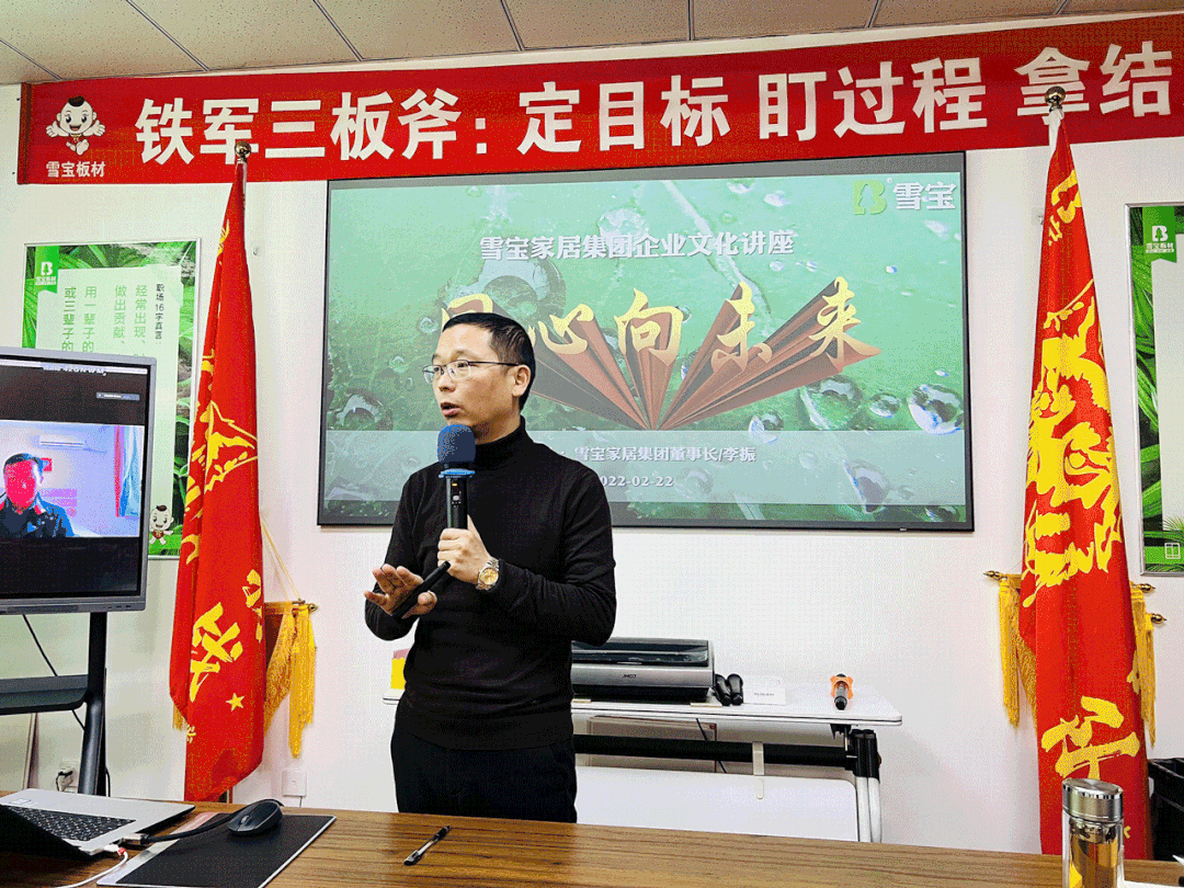 勠力同心迎開局,凝心聚力促發(fā)展!會議伊始,雪寶家居集團(tuán)董事長李振先生傾情講演新年第一課《同心向未來》,通過切身經(jīng)歷以及品牌創(chuàng)建、企業(yè)發(fā)展的辛酸歷程,結(jié)合企業(yè)文化內(nèi)容展開講解,讓每一位家人都深刻明白雪寶企業(yè)文化中每一條內(nèi)容的精髓和真諦。