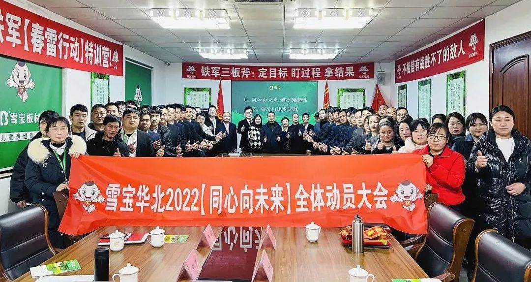 人勤春來早,奮進(jìn)正當(dāng)時。2月22日,雪寶家居集團(tuán)華北營銷中心成功召開2022“同心向未來”全體動員大會暨晉升任命儀式。雪寶華北區(qū)的全體家人們凝聚共識,團(tuán)結(jié)一心,在“踔厲奮發(fā)、開創(chuàng)新局”的2022年,上下同心,砥礪奮進(jìn),統(tǒng)一目標(biāo),力求雪寶品牌穩(wěn)健向上及再創(chuàng)發(fā)展新榮光。