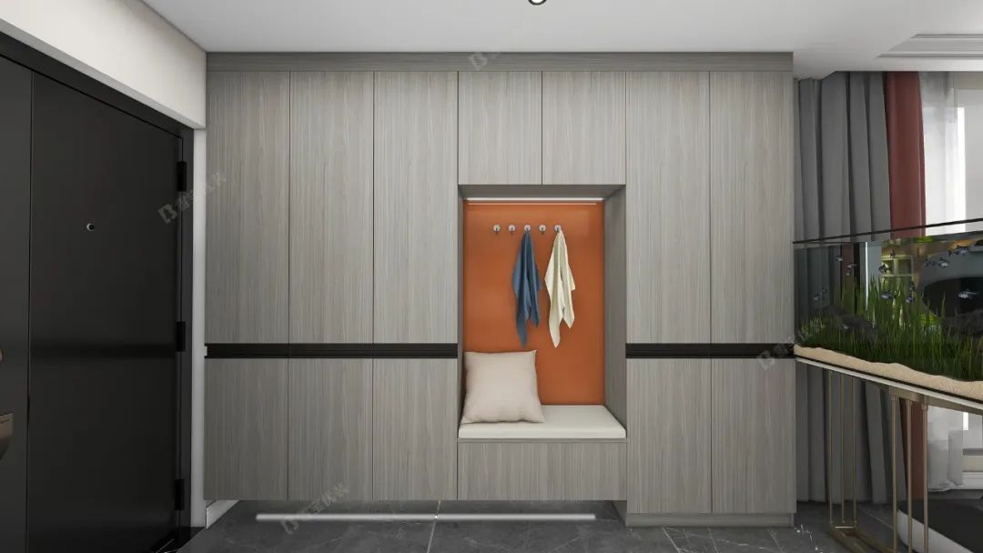 鞋柜內部配以裝飾燈帶點綴,免除了回家摸黑找開關的煩惱,還能讓人一進門就感受到家的溫暖。
