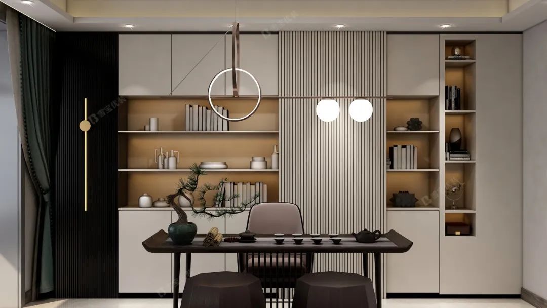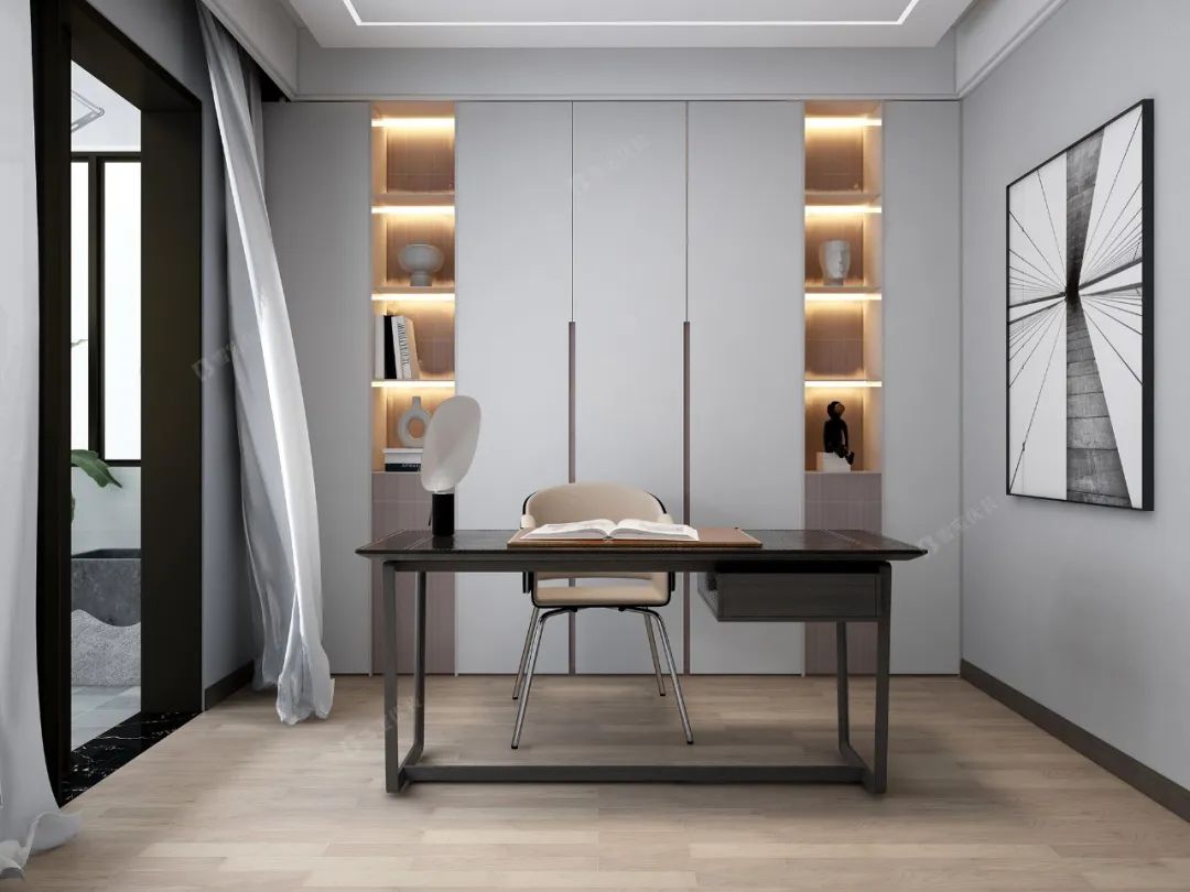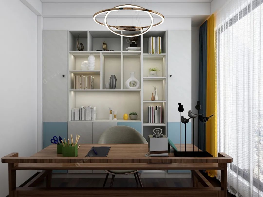 一個科學合理布局的書柜,既可以合理地利用空間,又可以提升整體的視覺美感,很好的調和了書房與書柜的沉悶感。