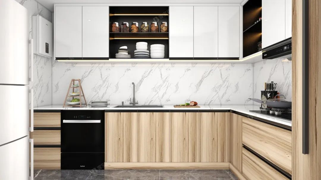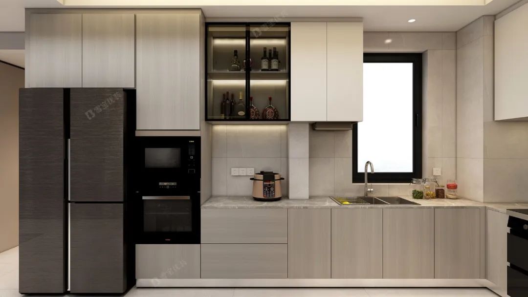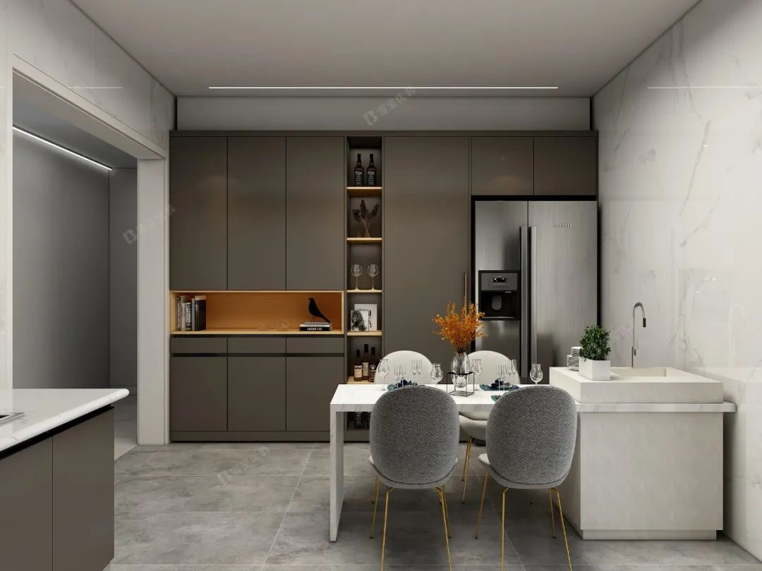 優(yōu)質環(huán)保的材質、柔和溫馨的燈光效果搭配簡單純粹的色彩,將廚房打造得精致美好更舒適整潔。