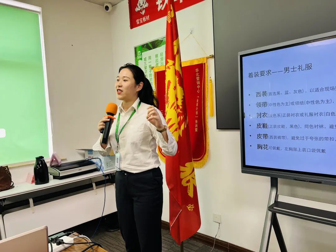 ▲雪寶家居集團(tuán)培訓(xùn)講師賀老師講解《雪寶主持人·角色定位及工作流程》《雪寶主持人·控場(chǎng)技巧及突發(fā)情況應(yīng)對(duì)》