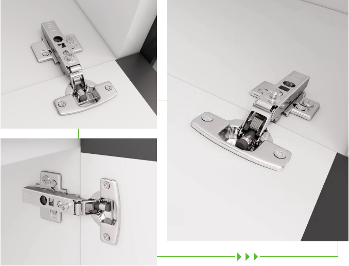 890超級(jí)靜音鉸鏈傳承超級(jí)靜音的產(chǎn)品根本,將“小角度緩沖“升級(jí)為“零角度緩沖”,即任意角度開啟您的柜門都有緩沖效果,不會(huì)有撞擊聲音、更不會(huì)夾傷小寶寶的手指(普通液壓鉸鏈安裝,柜門最少要開啟到45°以上,關(guān)門才會(huì)有緩沖)。
