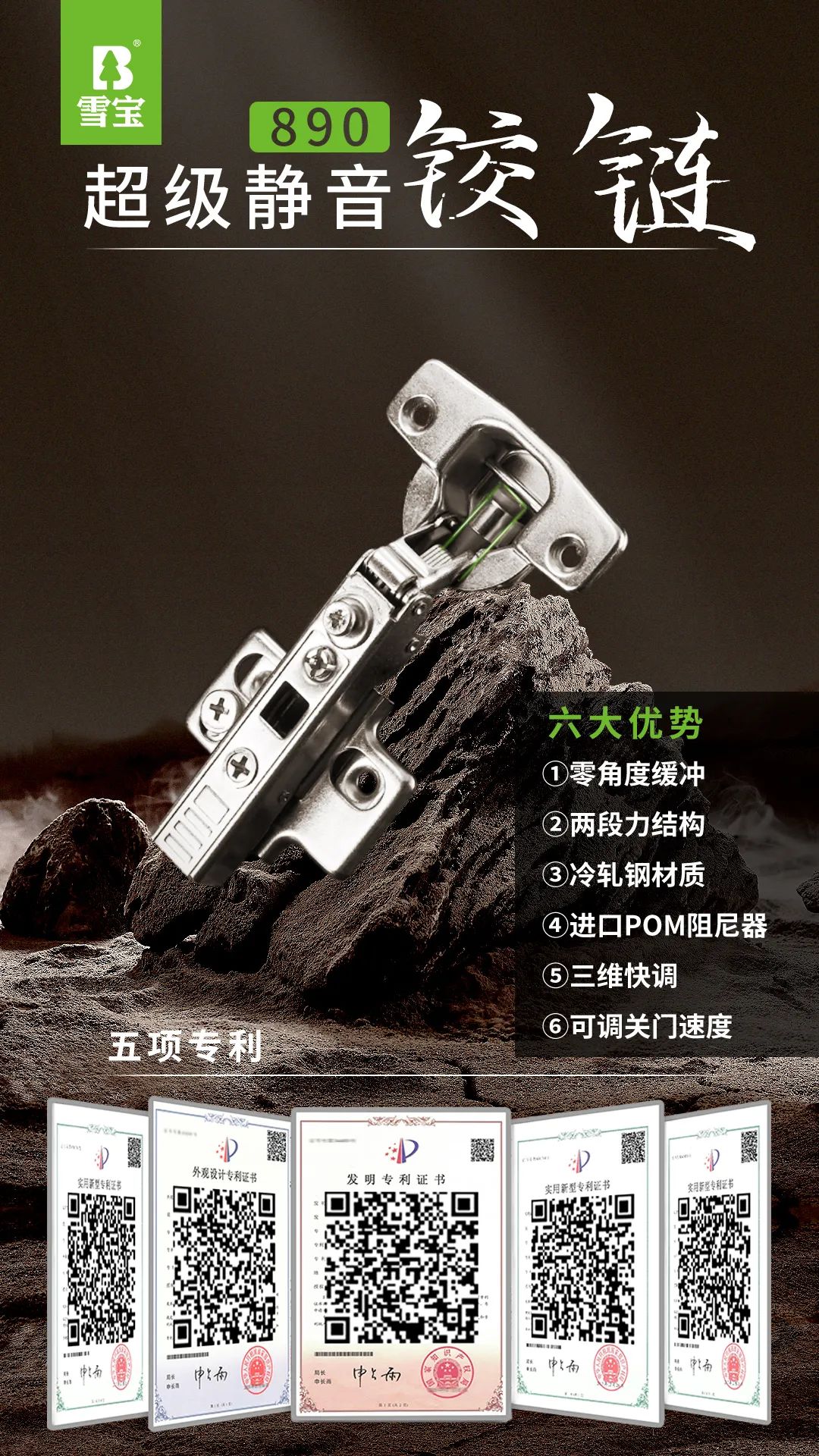 5項(xiàng)專利!6大優(yōu)勢!市面最強(qiáng)鉸鏈!雪寶890超級(jí)靜音鉸鏈實(shí)力出圈