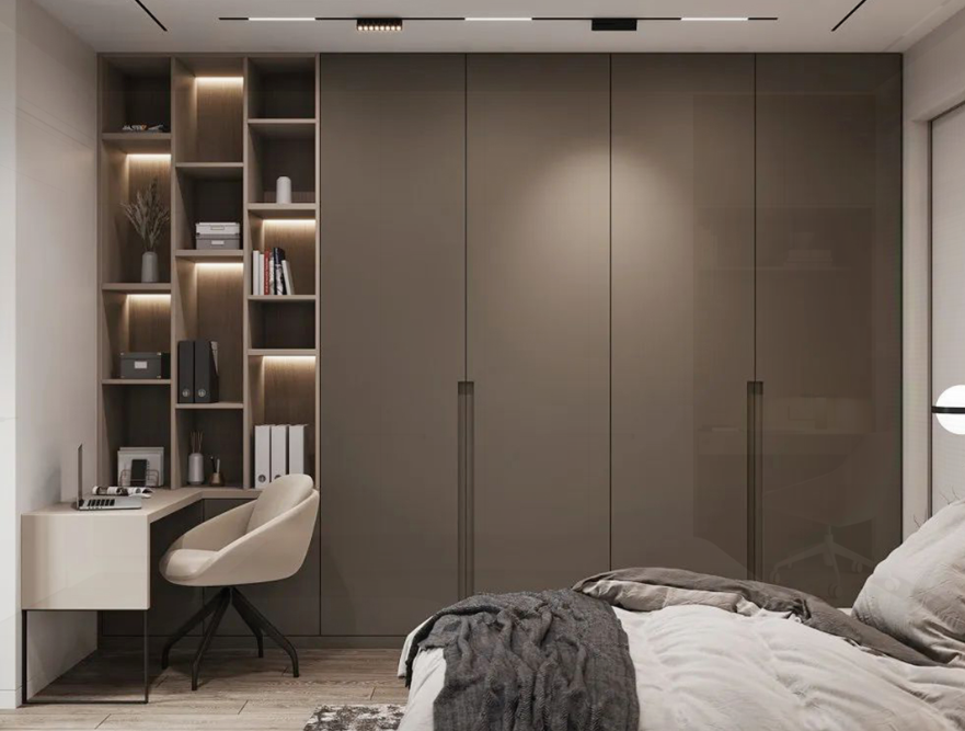 衣柜和書柜的組合設(shè)計(jì)是目前非常流行的一種組合方式,具備寧靜特征的衣柜搭配上需要安靜的書柜。不浪費(fèi)空間,又層次漸進(jìn),保持了美感,又兼具了實(shí)用性,非常適合小戶型臥室使用。