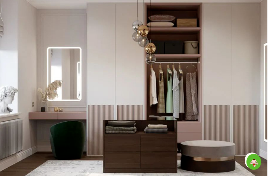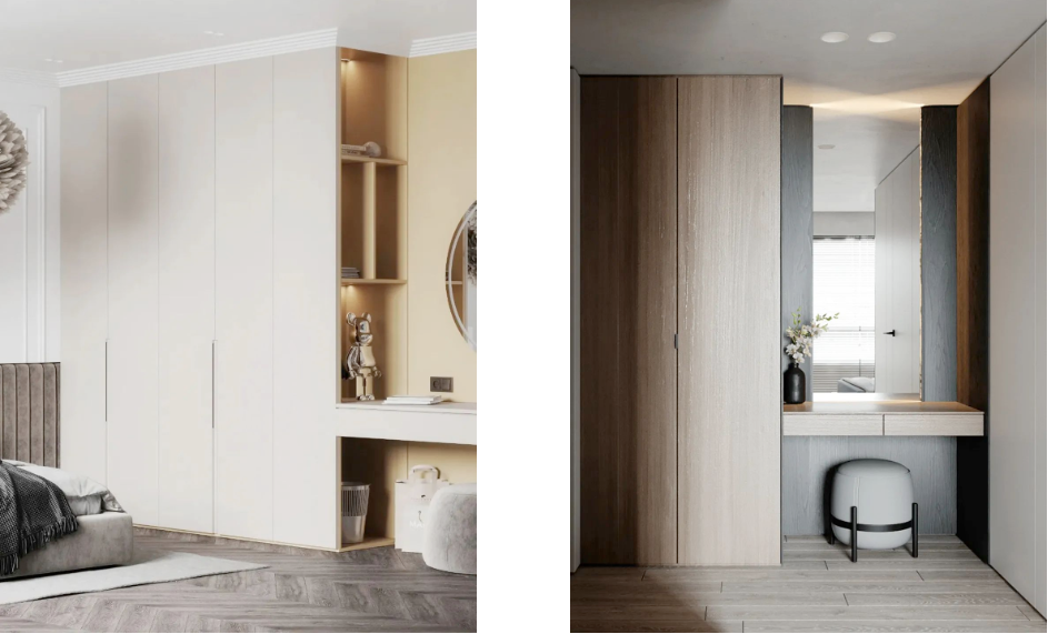 對于愛美的女士來說,除了想擁有一個大大的衣柜,可以放下想買衣服,當(dāng)然也希望有一個梳妝臺。衣柜連接梳妝臺則完美解決這個問題,整體空間充分利用,梳妝、收納兩不誤。