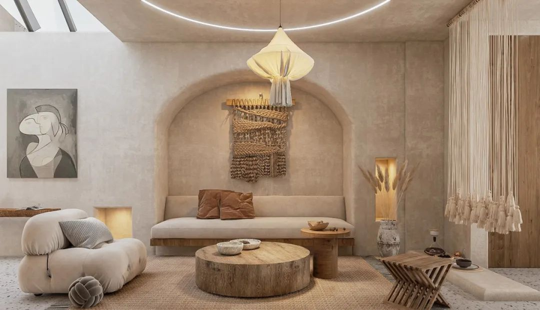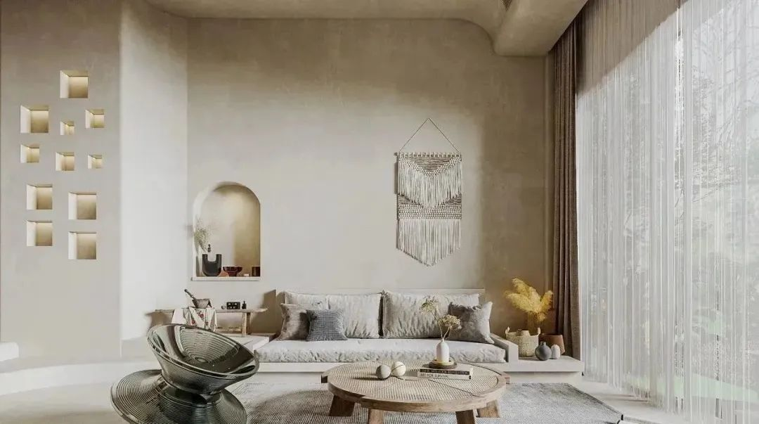 侘寂風(fēng)會(huì)模擬自然材質(zhì),自然材質(zhì)既有一定的肌理感,又有獨(dú)特的紋理質(zhì)感,帶來(lái)返璞歸真的親切感。
