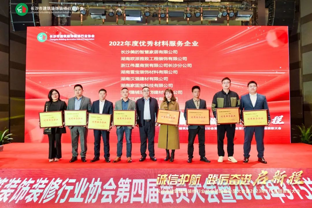 會議現(xiàn)場,雪寶板材與長沙市建筑裝飾裝修行業(yè)協(xié)會達成簽約合作,成為協(xié)會羽毛球俱樂部冠名單位,并榮獲“2022年度優(yōu)秀材料服務(wù)企業(yè)”,攜手為本土建筑裝飾裝修行業(yè)創(chuàng)新發(fā)展及締造美好人居環(huán)境提供高品質(zhì)保障。