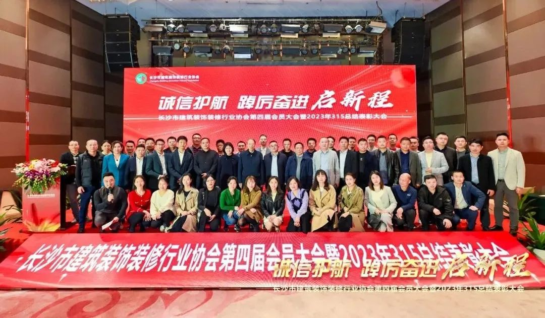 神州春潮起,奮進正當(dāng)時!2023年3月9日,“誠信護航·踔厲奮進啟新程 ”長沙市建筑裝飾裝修行業(yè)協(xié)會第四屆會員大會暨315總結(jié)表彰大會在星城長沙隆重召開。長沙市住建局、市民政局領(lǐng)導(dǎo)、長沙市建筑裝飾裝修行業(yè)協(xié)會(后文簡稱市裝協(xié))、千思、金煌、名匠、金空間、鴻揚、點石、美迪、東家樂等各大裝飾公司,以及數(shù)百余家會員單位代表共聚交流。