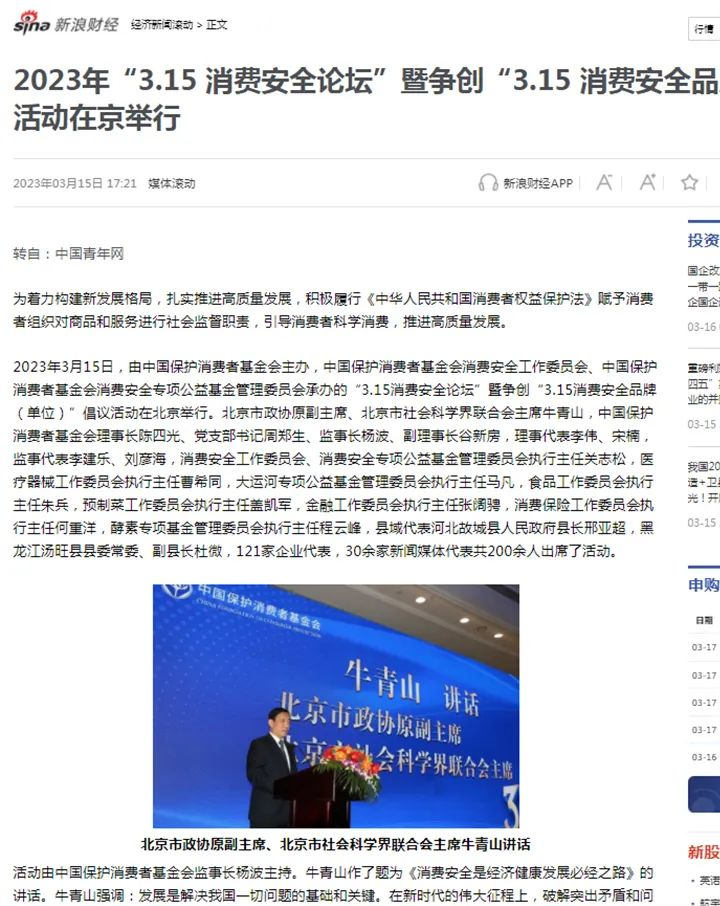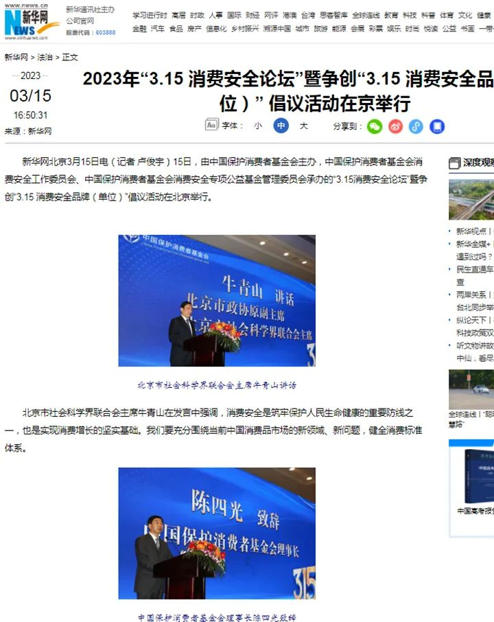 2023年3月15日,由中國(guó)保護(hù)消費(fèi)者基金會(huì)主辦,中國(guó)保護(hù)消費(fèi)者基金會(huì)消費(fèi)安全工作委員會(huì)、中國(guó)保護(hù)消費(fèi)者基金會(huì)消費(fèi)安全專項(xiàng)公益基金管理委員會(huì)承辦的“3.15消費(fèi)安全論壇”暨爭(zhēng)創(chuàng)“3.15 消費(fèi)安全品牌(單位)”倡議活動(dòng)在北京舉行。雪寶受邀出席,并被授予“爭(zhēng)創(chuàng)3•15消費(fèi)安全品牌承諾單位”!