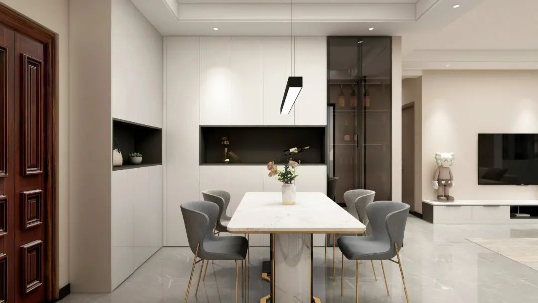 將餐邊柜與餐桌合二為一是很多小戶型家庭的選擇之一,兩者功能相輔相成?繅Χㄖ疲粌H能夠?qū)崿F(xiàn)空間的最大化利用,同時讓餐廳的功能更加豐富。▼