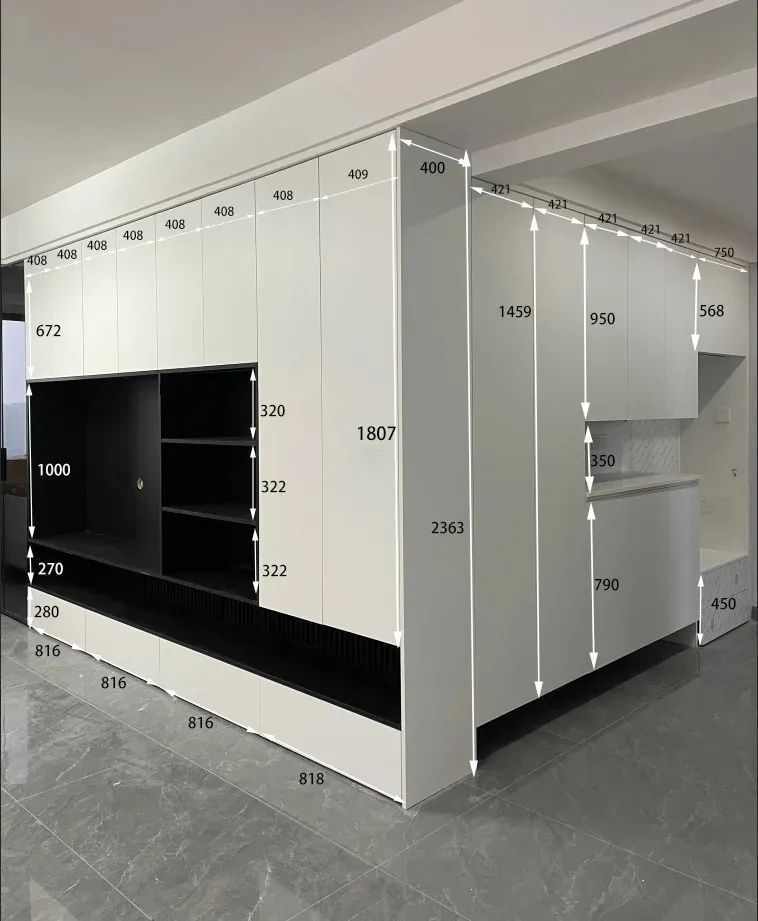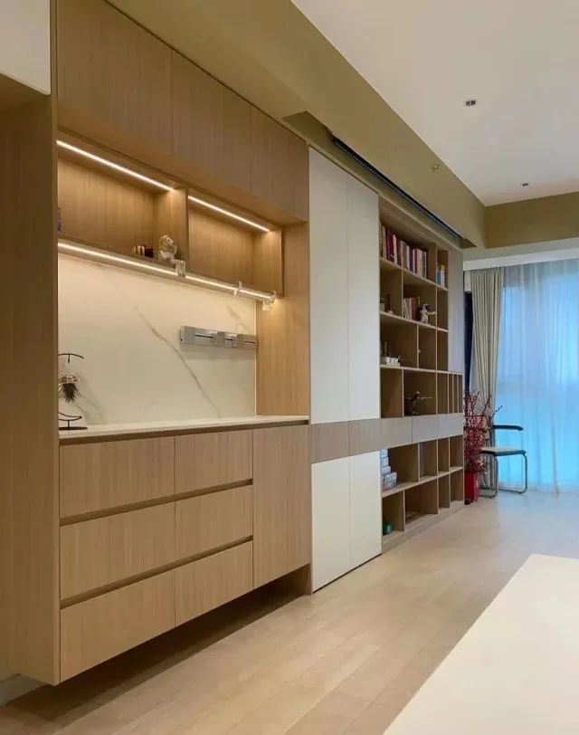因此,根據(jù)戶型結(jié)構(gòu)和自身需求綜合考慮,將柜體功能整合,一體化定制設(shè)計,可以讓空間利用更加充分合理,更好地服務(wù)于居住者。