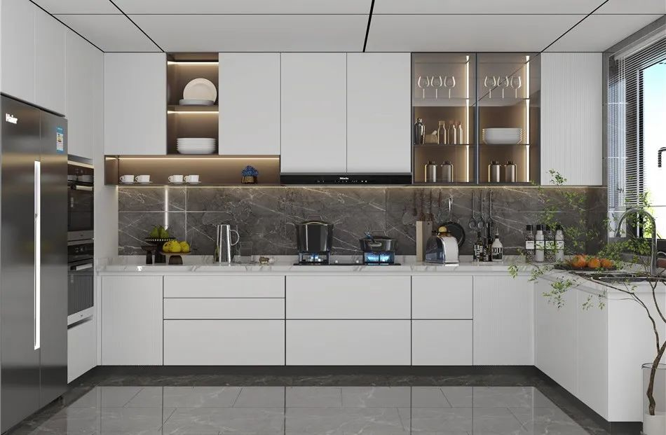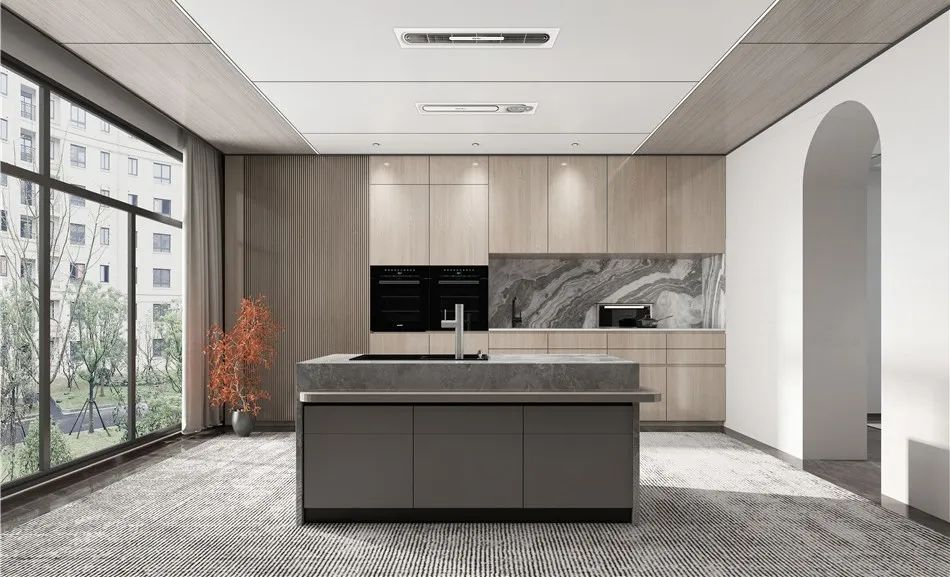 對于廚房的設(shè)計,追求空間變化的連貫性,布局合理劃分,定制櫥柜收納充足,且具美觀性,大面積白色基調(diào)讓廚房在內(nèi)斂之中彰顯簡潔大氣,展現(xiàn)出廚房應有的干凈樣貌。顯然,下廚烹調(diào)美味的背后亦是暖心滿滿的幸福感。