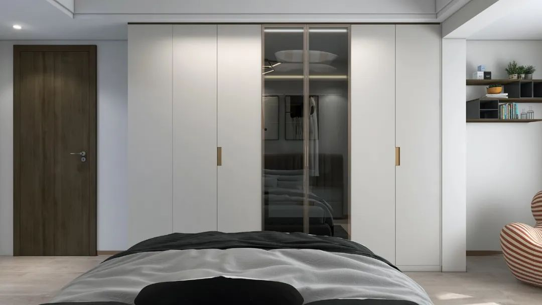 將衣柜與窗戶結(jié)合,設(shè)計(jì)飄窗一體柜,能夠在有限的空間內(nèi)實(shí)現(xiàn)最大的儲(chǔ)物功能,對(duì)于小戶型臥室十分友好!