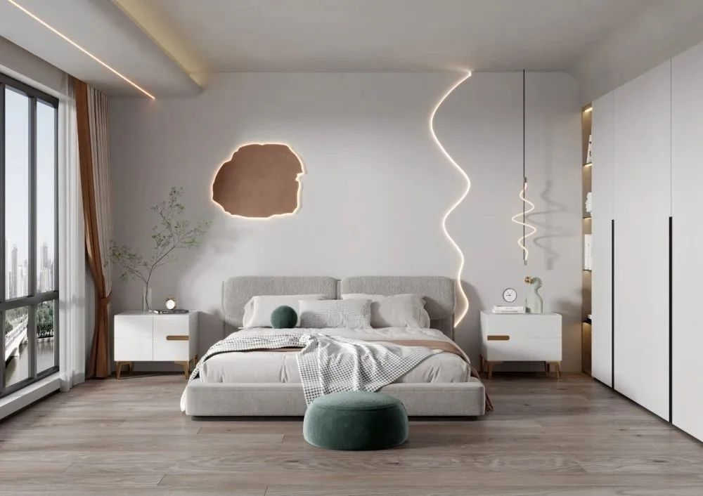 對于設(shè)計而言,空間和面的區(qū)別就是,空間的立體感是面永遠給不了的。所以,即使是很小的細節(jié),也能體現(xiàn)一個空間的質(zhì)感。希望你們的臥室不僅僅是睡覺的地方,更是能夠笑著做夢的地方。