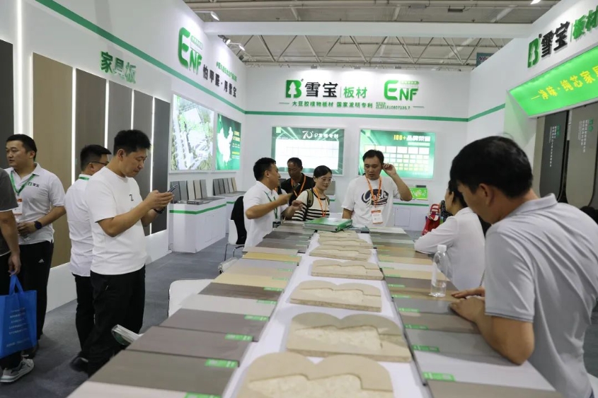 數(shù)年前,雪寶板材就已通過研發(fā)出遠(yuǎn)超國標(biāo)環(huán)保標(biāo)準(zhǔn)數(shù)10年的E0級(jí),目前全系產(chǎn)品又率先實(shí)現(xiàn)升級(jí)ENF級(jí),環(huán)保品質(zhì)一直走在行業(yè)前列。同時(shí),通過掌握核心環(huán)保技術(shù)力量零醛添加的“大豆膠”國家發(fā)明專利,讓雪寶板材的產(chǎn)品環(huán)保力遠(yuǎn)優(yōu)于市面上多數(shù)板材產(chǎn)品!▲集團(tuán)董事長攜部分高管走進(jìn)展會(huì)現(xiàn)場并與合作伙伴進(jìn)行溝通